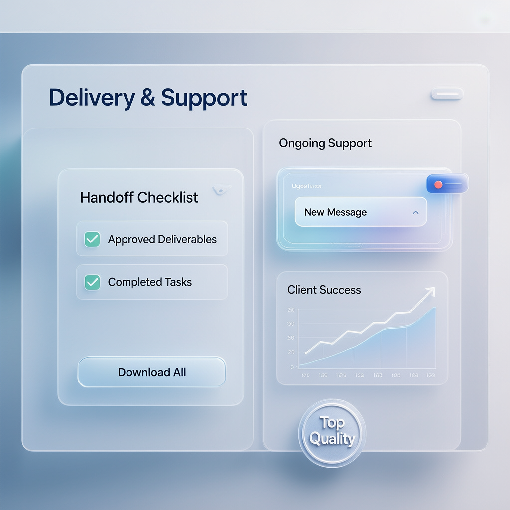 After completing all deliverables, we ensure everything is delivered on time and in perfect quality. But our relationship doesn’t end after delivery—we continue to support you with updates, improvements, and guidance whenever needed.